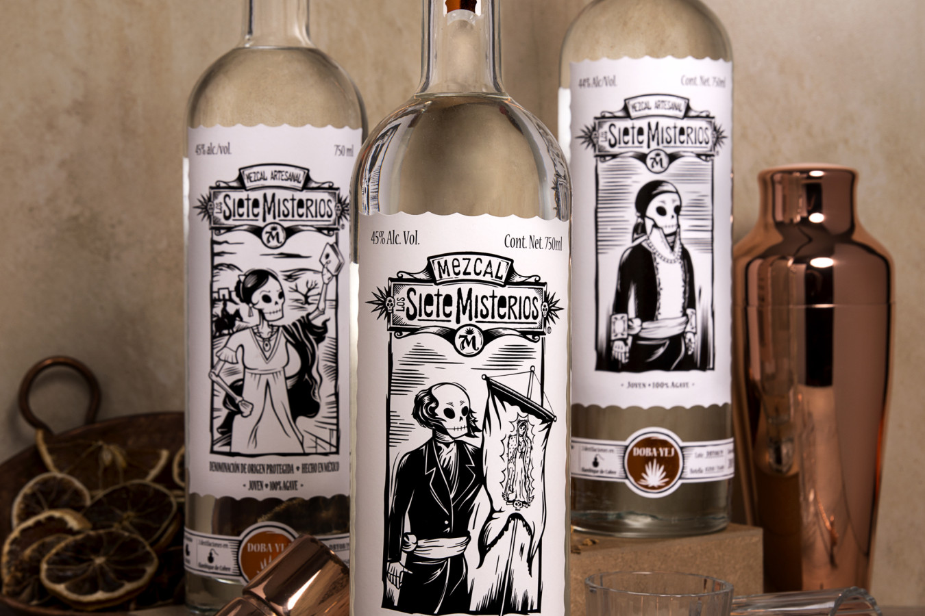 Mit dem Ziel, einen Mezcal herzustellen, der die Bräuche und Kultur Mexikos widerspiegelt und gleichzeitig lokale, kleine Produzenten unterstützt, gründeten die Brüder Julio und Eduardo Mestre 2010 Los Siete Misterios. Gemeinsam mit erfahrenen Maestros Mezcaleros entwickelten sie einen modernen Mezcal, der mit traditionellen Techniken hergestellt wird. Dabei werden Agaven von verschiedenen Plantagen in Oaxaca nach althergebrachten Methoden geerntet, in unterirdischen Öfen gekocht, gemahlen und schonend destilliert.