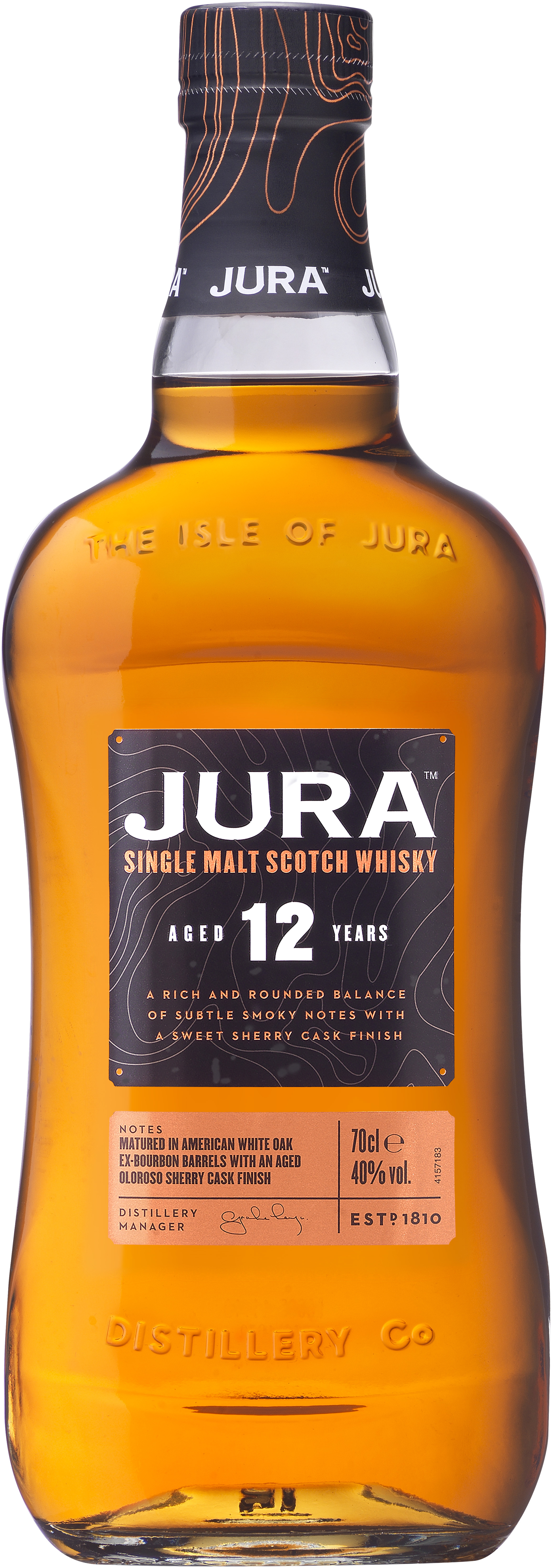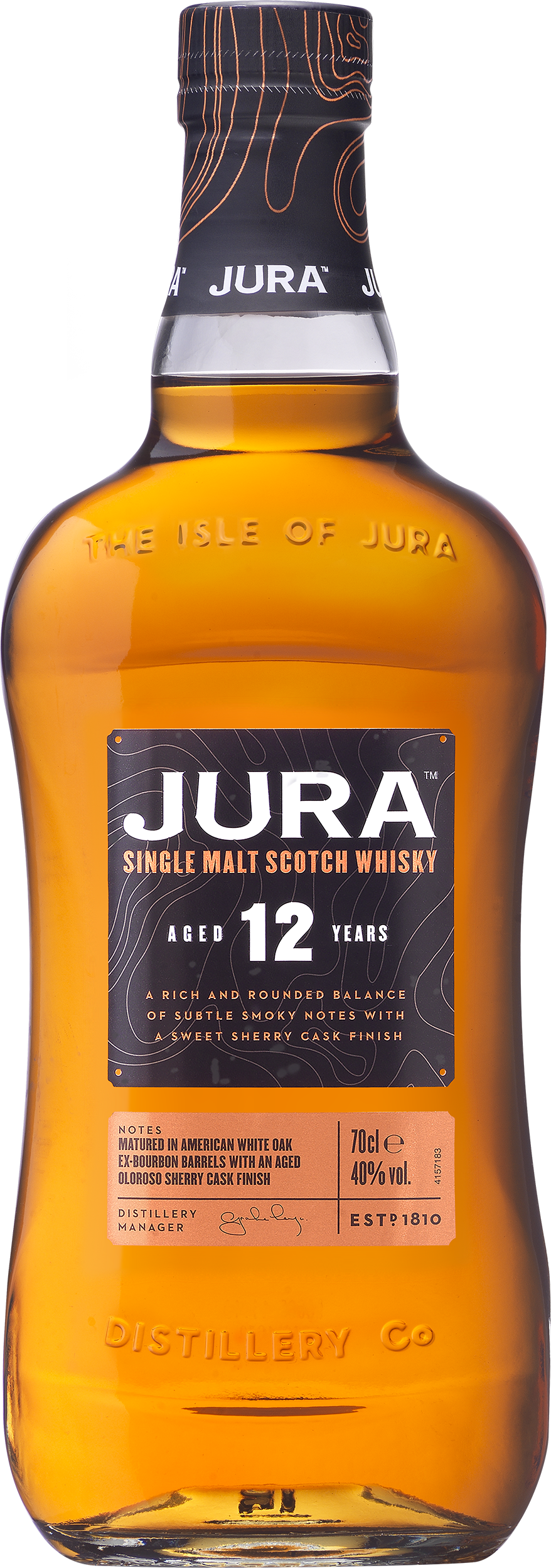 Dieser fruchtige und ausgewogene Single Malt Whisky fängt den Geist der Insel Jura ein und ist der perfekte Ausdruck unseres Hausstils - Fruchtig, aromatisch und ausbalanciert. Jura 12 reift überwiegend in amerikanischen Ex- Bourbon Fässer für 12 Jahre. Um die Steinobst- und Zitrusnoten unseres Hausstils zu ergänzen, reift zudem ein Teil für rund 2 Jahre in Ex- Olorosso Sherry Fässern nach, bevor dieser Single Malt abgefüllt wird. Das Ergebnis ist ein ausgewogener Inselwhisky mit reichhaltigen Zitrus- und Steinobstnoten, leichter Schärfe und einem starken Abgang mit Aromen von gerösteten Wallnüssen, abgerundet mit einem Hauch von rauchiger Seebrise.