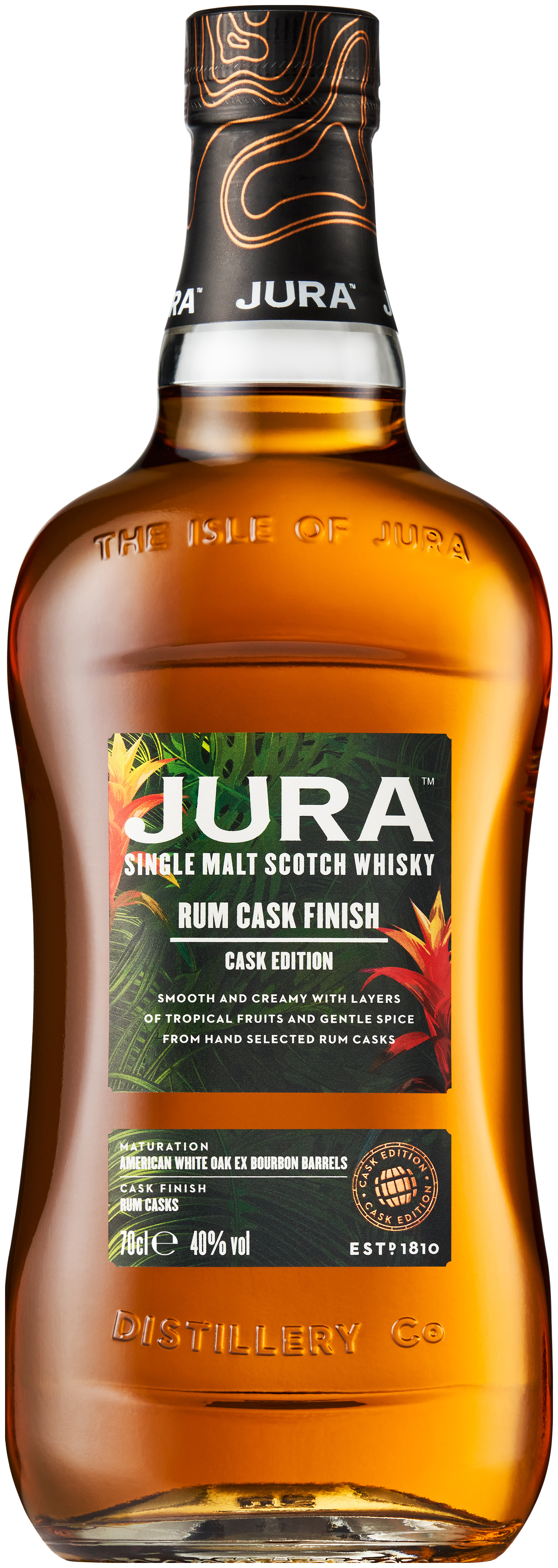 Durch sein Finish im Rumfass aus der Karibik erhält dieser Whisky Noten von Guave und Kokosnuss, gebrannten Mandenl, Aprikose und einen Hauch von Zitrus. Im Geschmack kommen tropische Aromen von Vanille, Mango, Banane und einem Hauch von Zimt. Die perfekte Verschmelzung von einem schottischen Jura Inselwhisky mit dem trpischen Aroma eines Rumfasses.