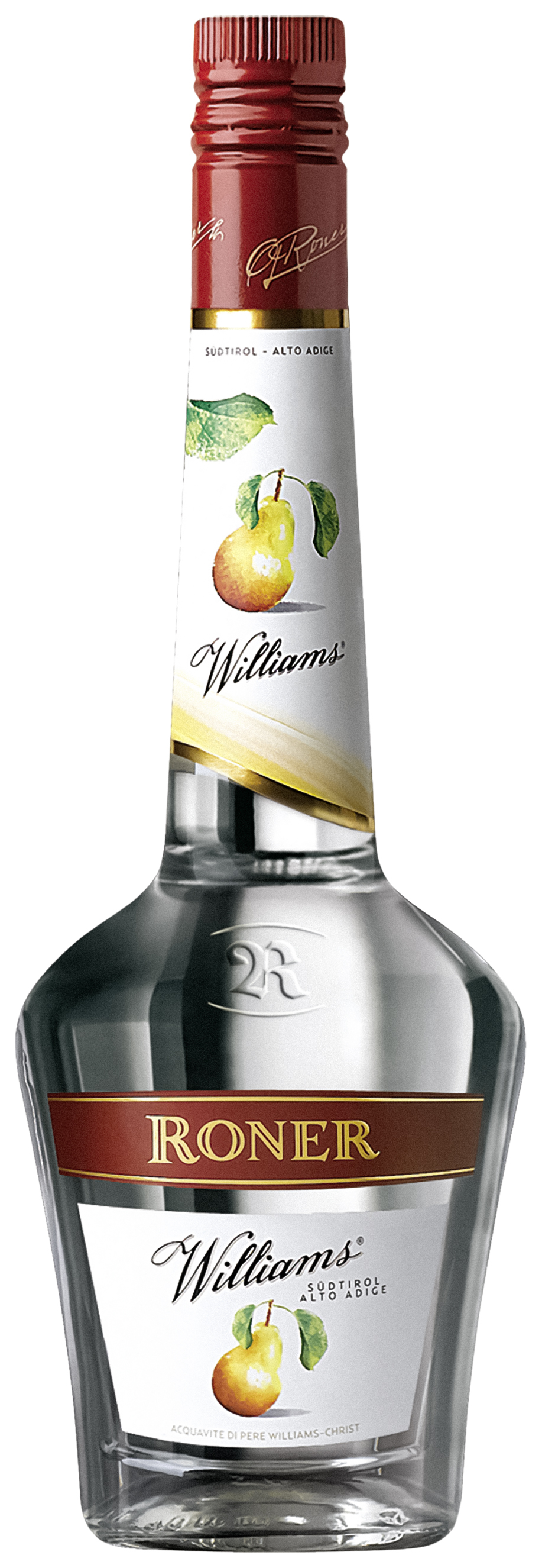 Der mehrfach ausgezeichnete Birnenbrand erhält seinen runden, vollen und fruchtigen Geschmack durch die zweifache Destillation erlesener Williams-Christ-Birnen nach dem von Roner perfektioniertem Blasenverfahren.