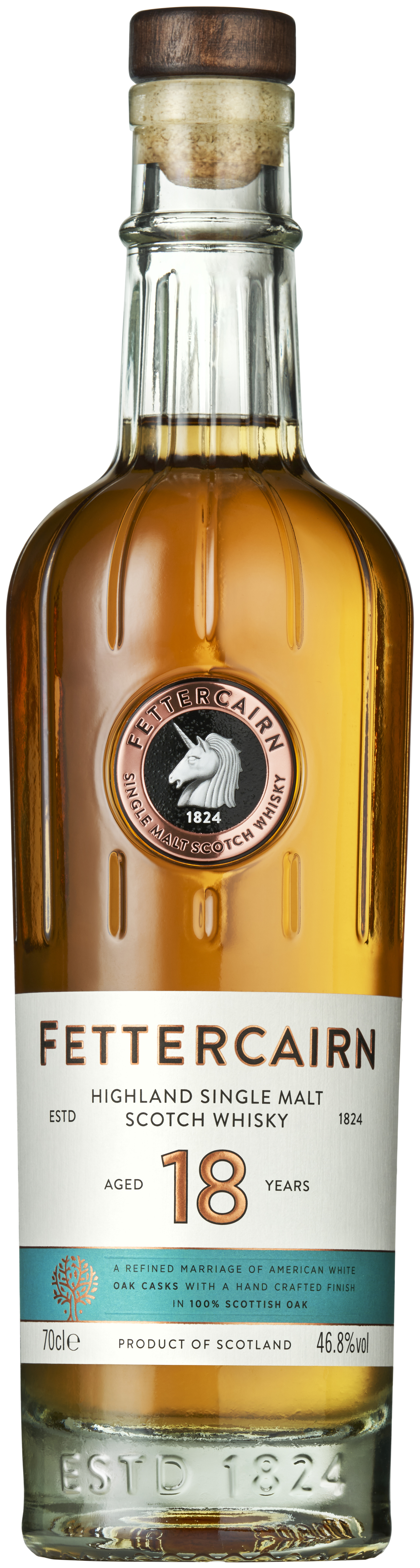 Dieser 18-jährige Single Malt Whisky wurde hergestellt mit einer sorgfältig selektierten Auswahl von First Fill und Refill Ex-Bourbon Casks. Das wirklich Besondere liegt aber in Reifung die sich an die mindestens 3 Jahre in den amerikanischen Bourbon Fässern anschließt: Die weitere Reifung in Fässern aus 100% schottischer Eiche. So entsteht eine wuderbare Tiefe in den Whiskys und eine einzigartige Harmonie rund um die für Fettercairn charakteristischen tropischen Aromen, die durch den Cooling Ring bei der Destillation entstehen. Wunderschön anzusehen mit seiner goldenen Bersteinfarbe öffnet sich der Whisky in der Glase mit Aromen von gebrannten Mandeln, Passionsfrucht, Guave und tropischen Früchten. Im Geschmack kommen Noten von Brioche und Beeren zu den tropischen und nussigen Noten dazu, mit einem Hauch von Vanille und Kakao.