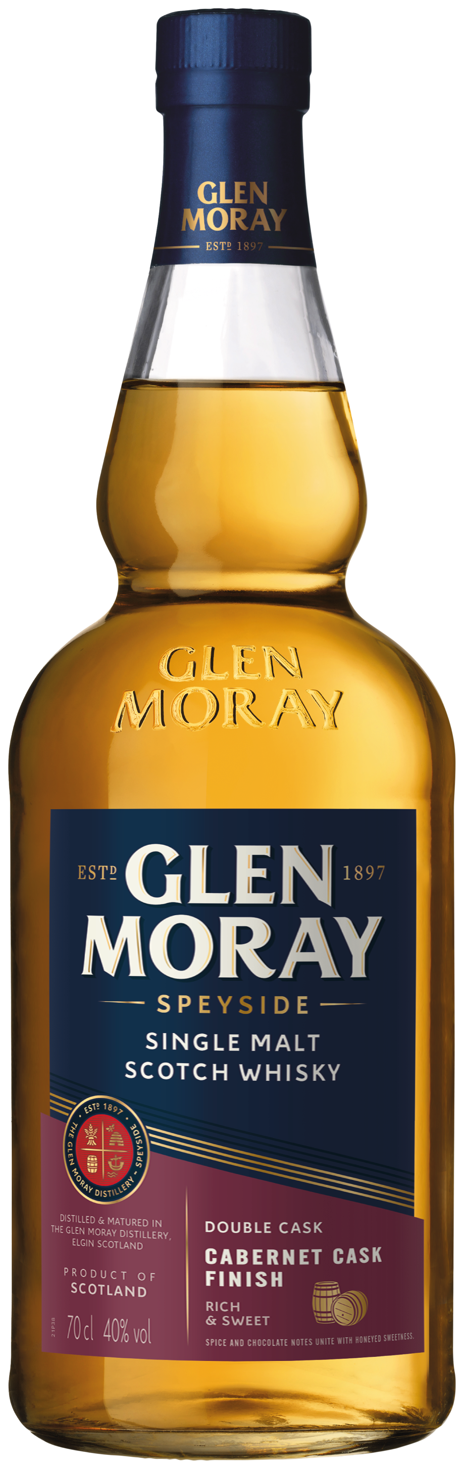 Im Herzen der Speyside destilliert Glen Moray seit mehr als 125 Jahren feinsten Single Malt. Im Glen Moray Cabernet Cask vereinen sich reichhaltige, dunkle Schokolade, intensive Gewürz- und Eichennoten mit dem typisch ausgewogenen Stil von Glen Mory.