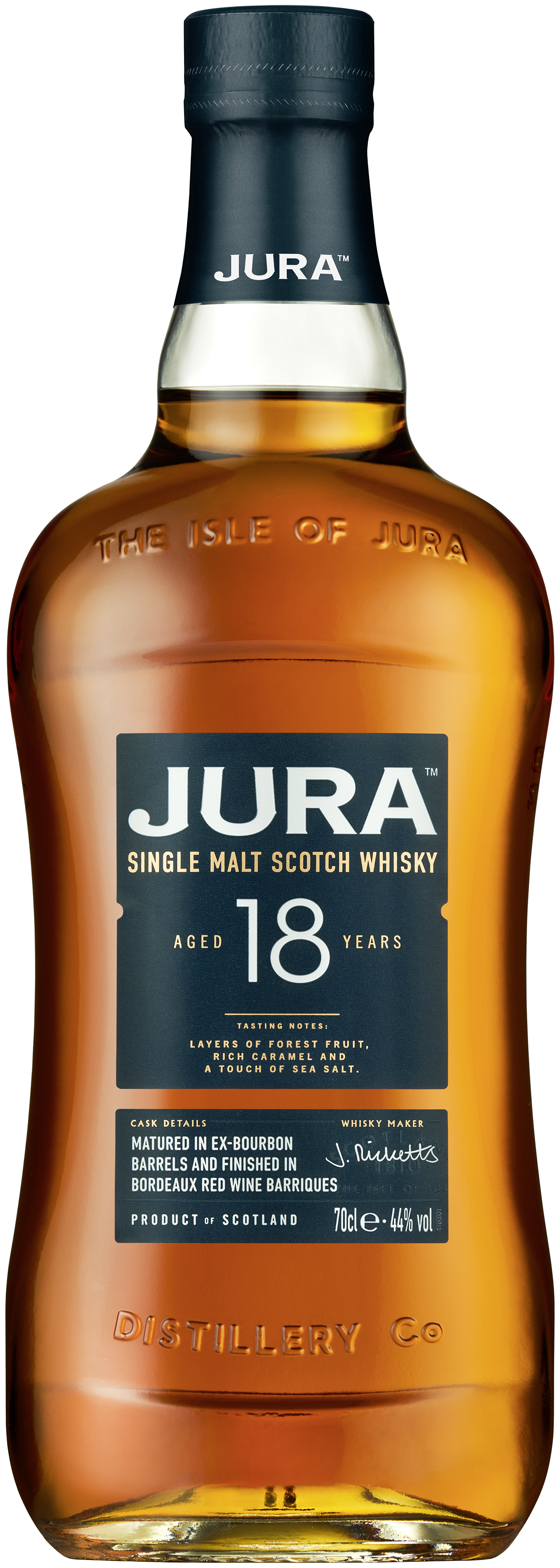 Man sagt, das Rad der Zeit hält niemand auf. Bei Jura hingegen wird die Zeit ausgedehnt. Die wechselnden Jahreszeiten und das einzigartige Mikroklima – jedes Jahr, das vergeht, bringt seinen eigenen Reichtum hervor. Ganze 18 Jahre lang in ehemaligen Bourbon-Fässern gereift und in hochwertigen Premier-Grand-Cru- Bordeaux-Fässern verfeinert, entsteht ein wirklich reifer, einzigartiger Whisky.