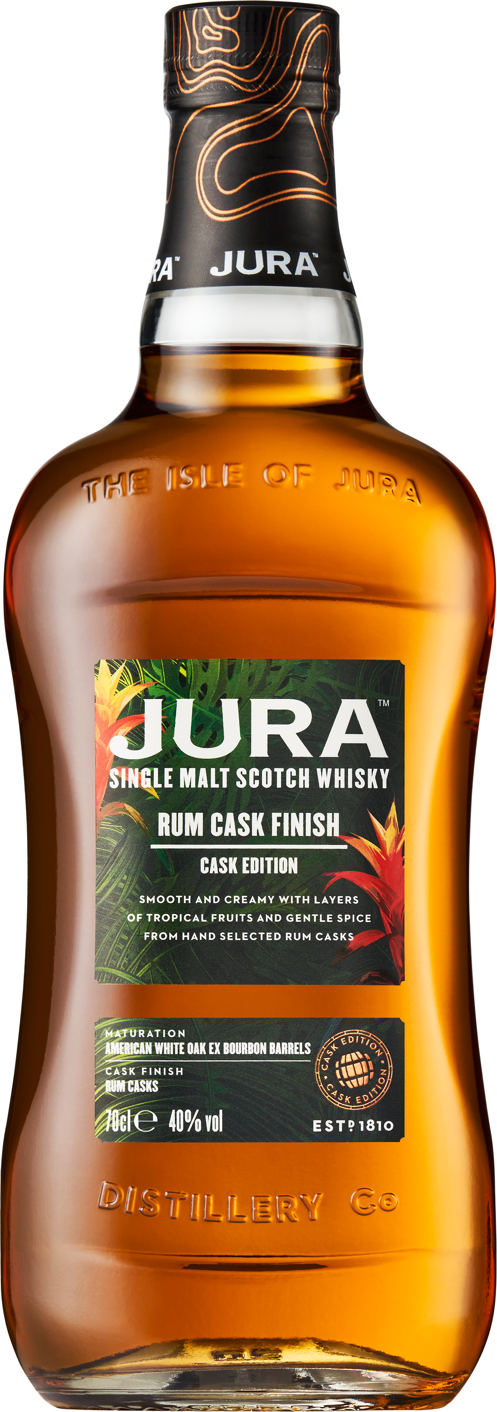 Durch sein Finish im Rumfass aus der Karibik erhält dieser Whisky Noten von Guave und Kokosnuss, gebrannten Mandenl, Aprikose und einen Hauch von Zitrus. Im Geschmack kommen tropische Aromen von Vanille, Mango, Banane und einem Hauch von Zimt. Die perfekte Verschmelzung von einem schottischen Jura Inselwhisky mit dem trpischen Aroma eines Rumfasses.