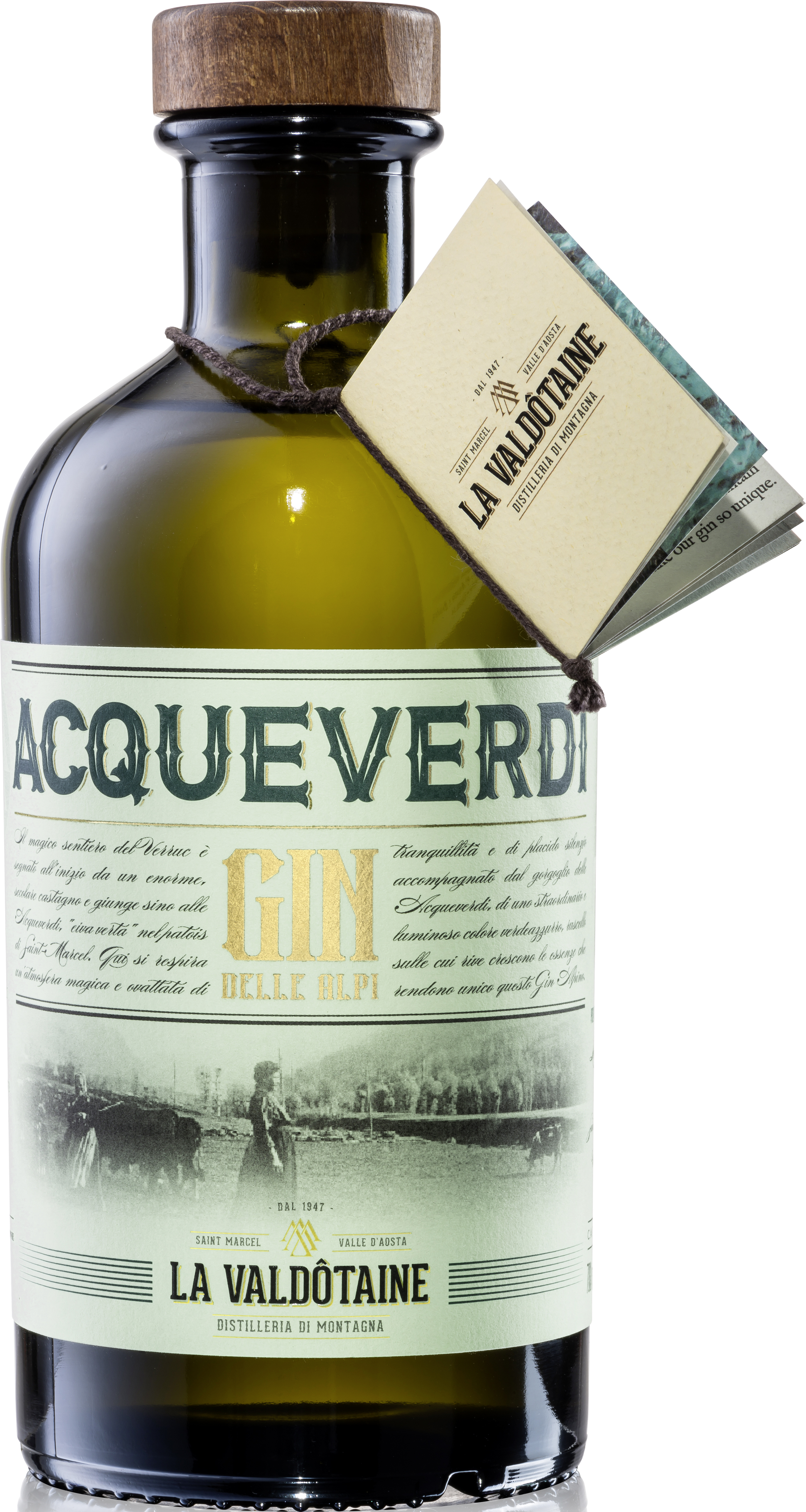 La Valdôtaine ist eine kleine Destillerie in den Alpen, wo in alten Kupferbrennblasen kleine Chargen in handwerklicher Kunst hergestellt werden. Knapp zwei Stunden Fußweg von der Brennerei entfernt stürzt der Acqueverdi-Wasserfall ins Tal. Seltene Mineralien lassen das Wasser in leuchtendem Türkis schimmern und verleihen dem Gin Acqueverdi seinen authentisch alpinen Charakter.