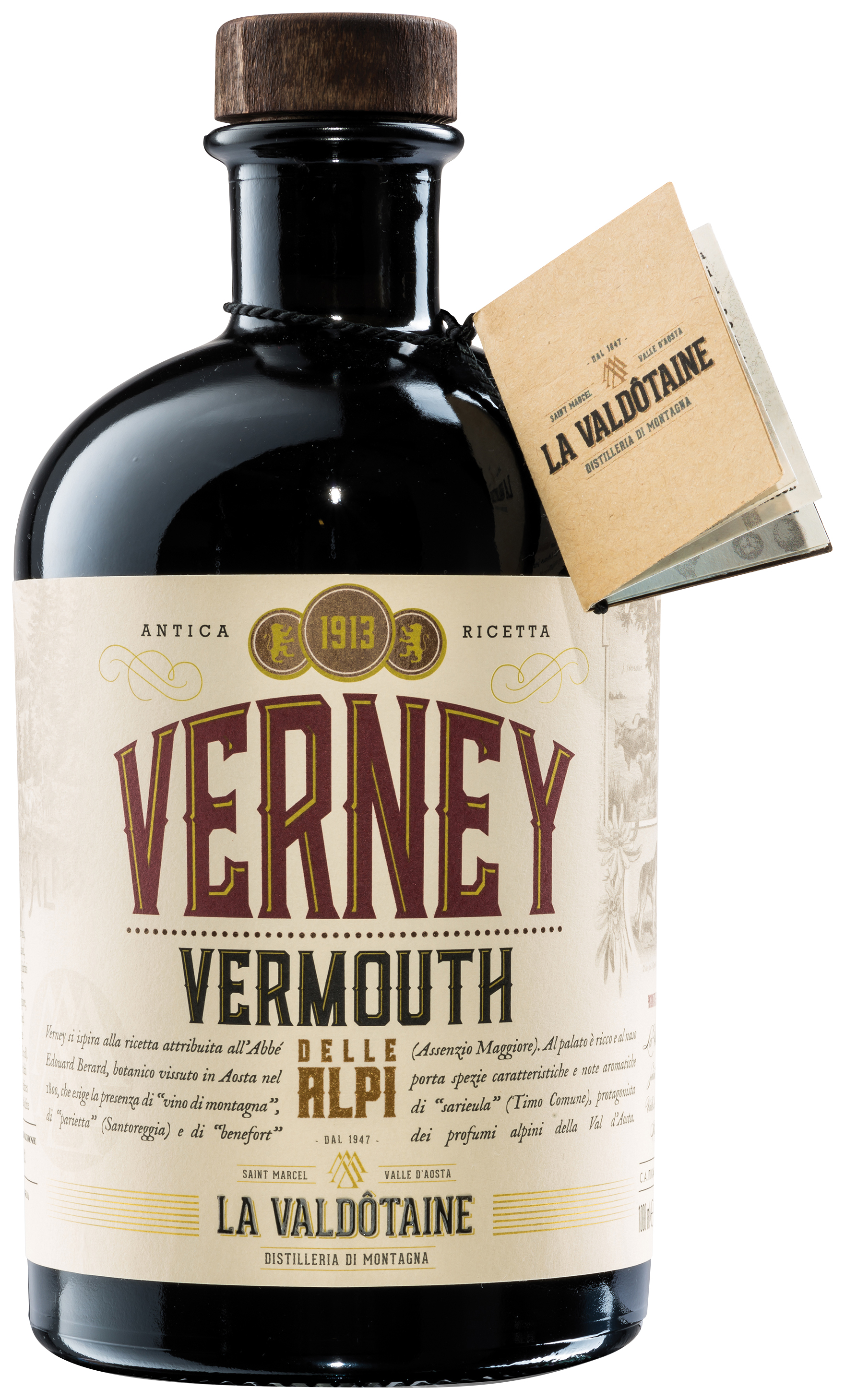 Zum Ende des 18. Jahrhunderts wurde Vermouth in Turin erfunden und kam durch das Adelshaus Savoyen in Mode. Schon bald explodierte die Anzahl an verschiedenen Vermouth Rezepten. Der Verney Vermouth delle Alpi wird nach einem 1913 wieder entdeckten Rezept hergestellt, das Abt Edouard Berard, einem Botaniker aus dem Aostatal, zugeschrieben wird. Der Name stammt von einem der größten Seen im Aostatal auf 2000 Metern Höhe. An seinen Ufern gedeiht eine reiche alpine Flora. Unter anderem zahlreiche Bergkräuter wie Bohnenkraut, Wermut und alpiner Thymian, die den Charakter des Vermouth Verney ausmachen.