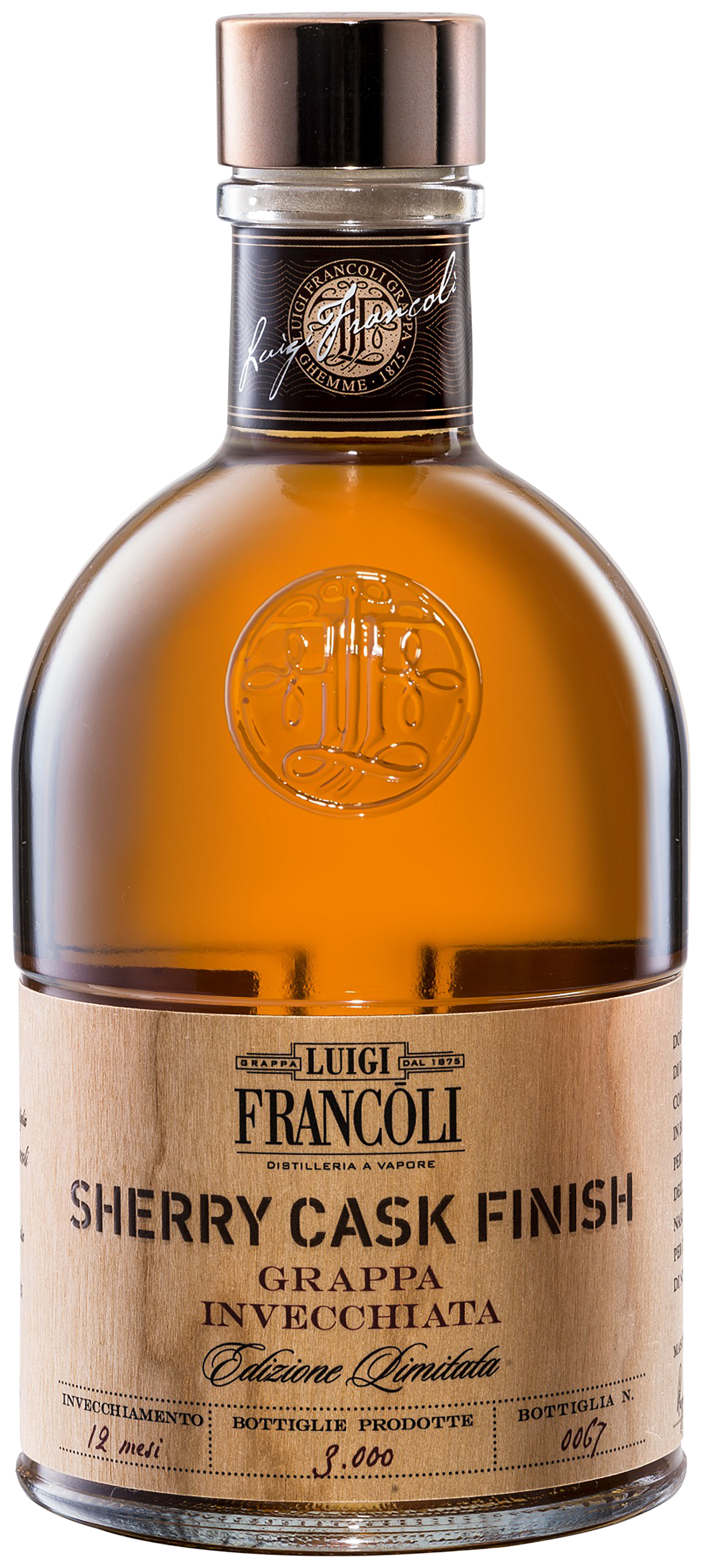 Der Francoli Grappa Luigi Francoli Sherry Cask Finish gehört zu den exklusiven gereiften Grappas der erfolgreichen Brennerei Francoli aus dem Piemont, die in besonderen Fässern gefinisht werden. Für den Ausbau der edlen Grappas werden Fässer verwendet, die zuvor von angesehenen Brennereien zur Reifung von anderen Spirituosen oder Weinen eingesetzt wurden. Für das mehrmonatige Finish des Grappa Luigi Francoli Sherry Cask kamen Sherryfässer zum Einsatz, die aus dem spanischen Andalusien stammen, das für seinen exzellenten Sherry weltberühmt ist. Das Ergebnis ist ein Spitzen-Grappa, der durch seine faszinierende fruchtig-würzige Note durch das Sherryfass überzeugt.