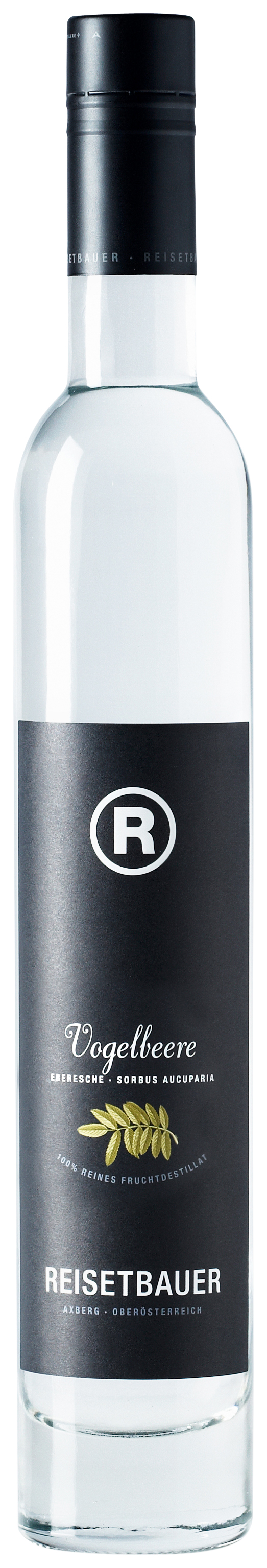 Als Rohstoff für dieses edle Destillat wird die Vogelbeersorte „Moravica“ verwendet. Die Vogelbeere, auch als Eberesche bekannt, wird im Herbst sorgfältig von Hand geerntet. Dass die „Vogel“-Beere nicht nur für Vögel eine Delikatesse ist beweist der köstliche Vogelbeerbrand, ein Klassiker im Hause Reisetbauer. Nach der Ernte werden die Beeren schockgefrostet. und für die Maischeherstellung werden vollreife, saubere Vogelbeeren von den Stängeln getrennt und fein zerkleinert. In Edelstahltanks wird dann zur Maische ca. 10 % Wasser hinzugefügt und das ganze ungefähr 12 Tage vergoren. Für einen Liter Vogelbeerbrand werden ca. 35kg Vogelbeeren benötigt.